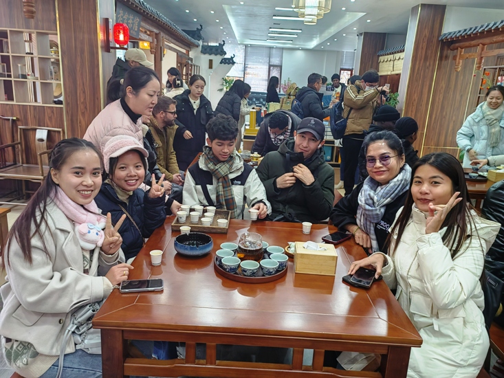 12月13日,来自柬埔寨、加纳、纳米比亚、巴基斯坦、博茨瓦纳、坦桑尼亚、索马里、埃塞俄比亚、尼日利亚、叙利亚、伊朗、阿富汗等12个国家的20名2024级临床医学和中文教育的留学生代表赴九江职业大学天工制作坊和万里茶道茶学院进行“感受非遗魅力、体验手工乐趣”活动。