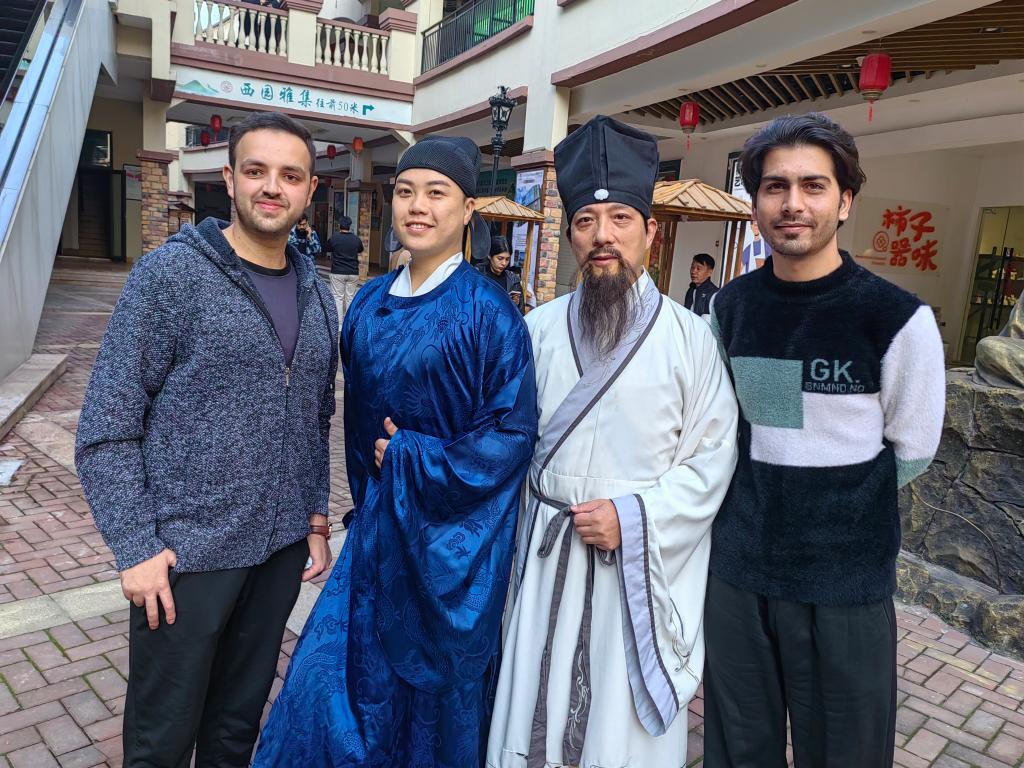 在九江茶市,传统美食风情街区人群熙熙攘攘,精美的茶歇让人目不暇接……九江茶市是我区重点扶持打造“九江茶卖全国,全国茶九江卖”的线上线下交易市场,街区内外多品种茶系入驻,品牌丰富、交易火热。学生们兴致勃勃,观看掐丝珐琅作品,观看茶饼制作全过程,品尝茶饼,领略茶文化的魅力,参观浏览茶博馆、茶书阁等,观看国画扇面的制作,来自巴基斯坦的学生王悦星兴奋的说:“通过这次活动,我深刻感受到了中国文化的魅力,中国茶很好喝,茶饼也很美味。”国际学生们海欣赏了古琴表演,深深陶醉于古琴表演的氛围中。