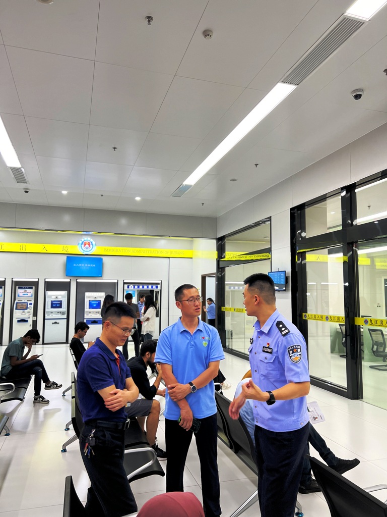6月20日,九江市公安局党委委员、副局长江任发一行来校调研,提出市出入境管理部门与驻地高校积极配合,相互合作,做好外籍人员的管理工作。此次国际学生专场服务也是落实该项会议精神的一项有力举措。办好居留许可延期手续后,国际学生们纷纷为民警们竖起了大拇指,对她们的精心服务表示感谢。学生EMAN FATIMA说到,今天下来办事服务大厅,碰上大雨,但在学校和出入境管理处的帮助下,我们非常顺利地办好了居留许可延期手续。国际学生专场服务给我们提供了很大的便利,希望以后还有这样的措施。