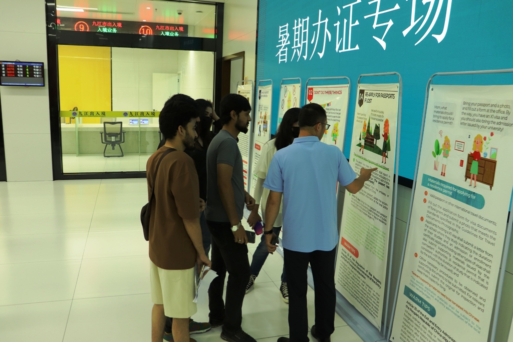 6月27日,为便利国际学生办理签证延期手续,有效解决暑期集中办理高峰,九江市公安局出入境管理处特推出国际学生专场服务。国际学生无需预约,可以集中在现场取号直接办理签证和居留许可延期手续。