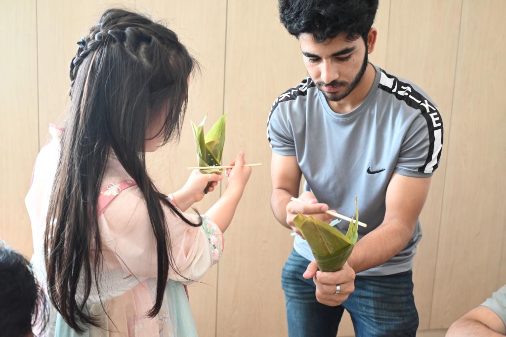 在音乐律动、互动问答、端午节英文rap表演等多种形式的活动中,大家了解到了端午节的起源、传说和习俗,大家积极参与其中,欢笑声此起彼伏。