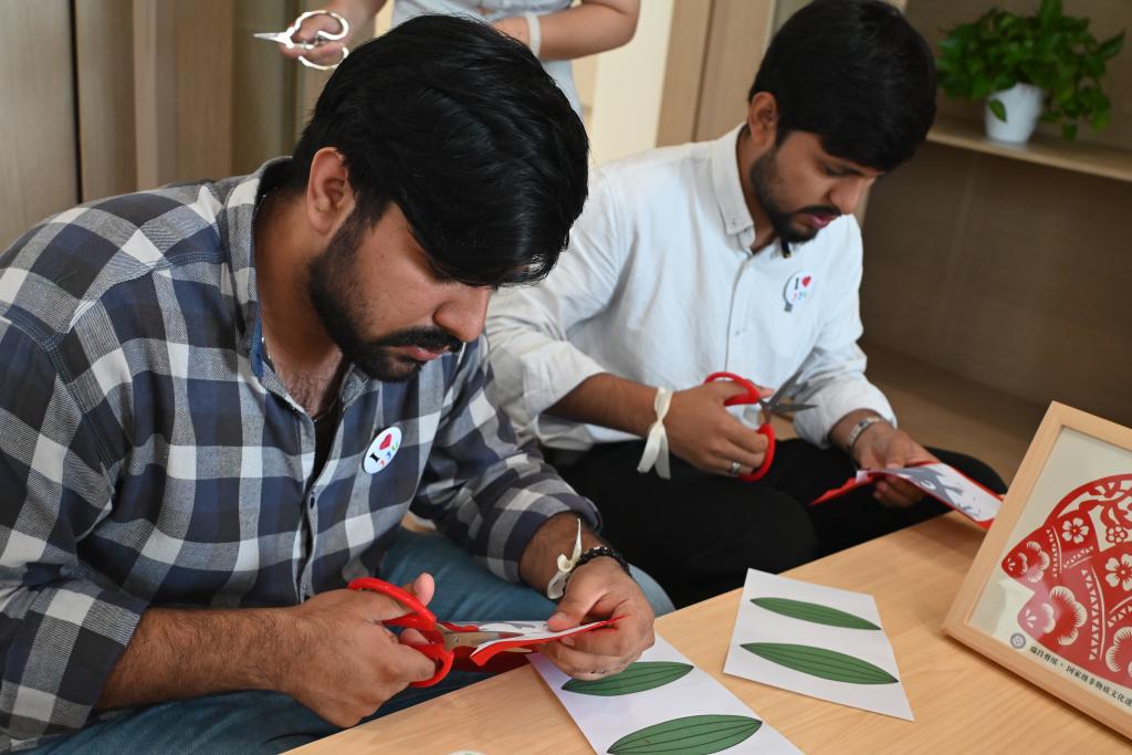 端午乐翻天环节,瑞昌剪纸博物馆的讲师陈梦梦为大家介绍了剪纸的历史,并现场展示了精美的作品。在陈老师的指导下,大家也纷纷上手尝试剪纸,一个个可爱精美的剪纸粽子映入眼帘,生动形象。同时,大家也纷纷向现场的老师和家长请教包粽子,在实践中感受传统。