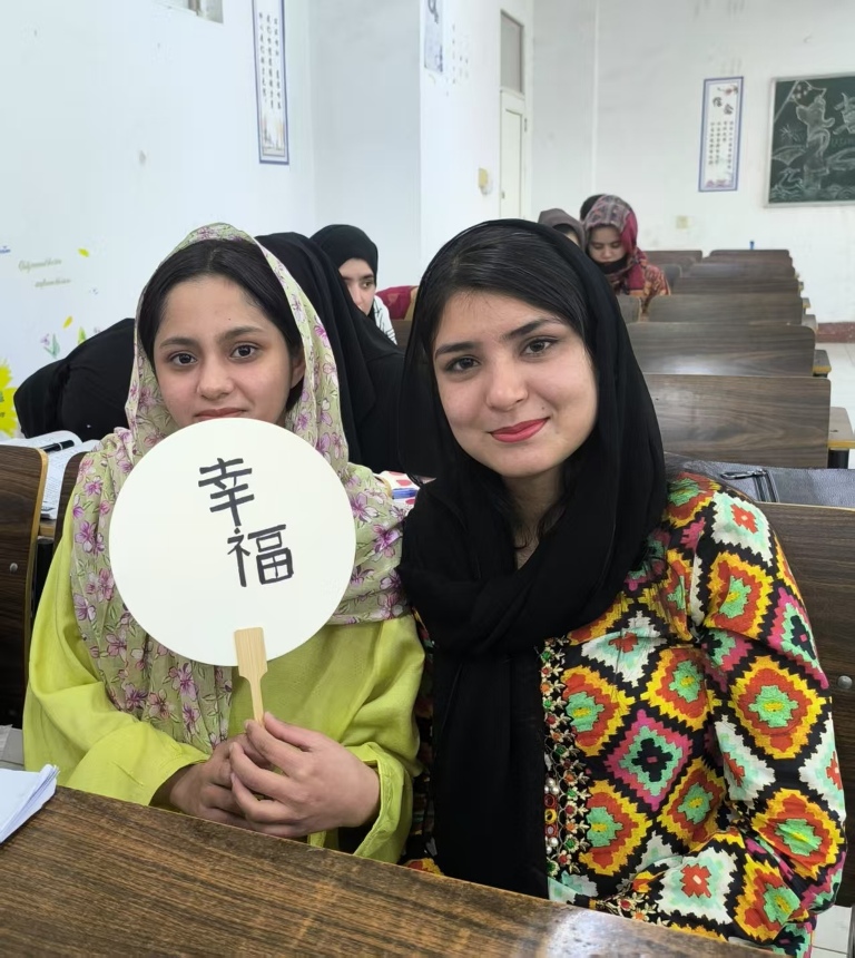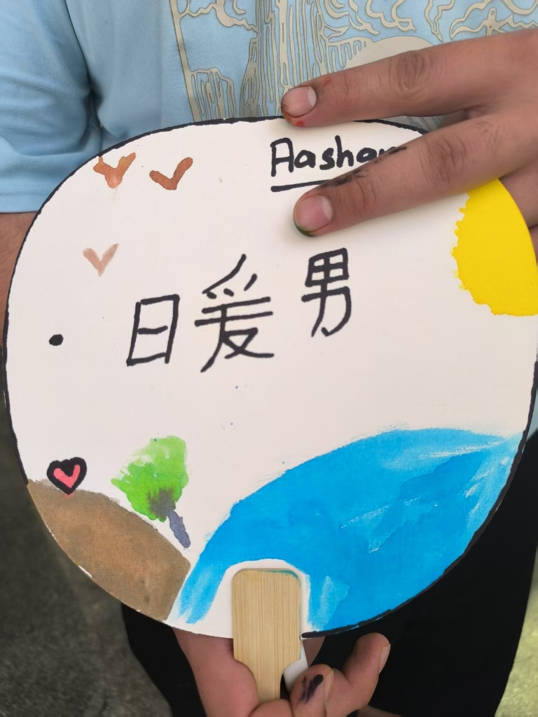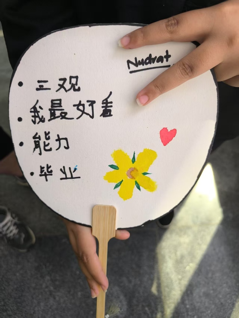 毛卫利老师带领的漆扇制作课堂同样精彩纷呈。学生们在空白纸扇上书写了自己喜爱的中文词汇或短句,其中不乏“绝绝子”“暖男”“干饭人”等网络流行语。课堂上,学生们积极互动,毛老师耐心解答了他们对词汇含义的疑问,并借此机会讲解了这些词汇背后的文化现象。这一环节不仅让学生们体验到汉字书写的乐趣,也加深了他们对中国当代语言文化的认识。