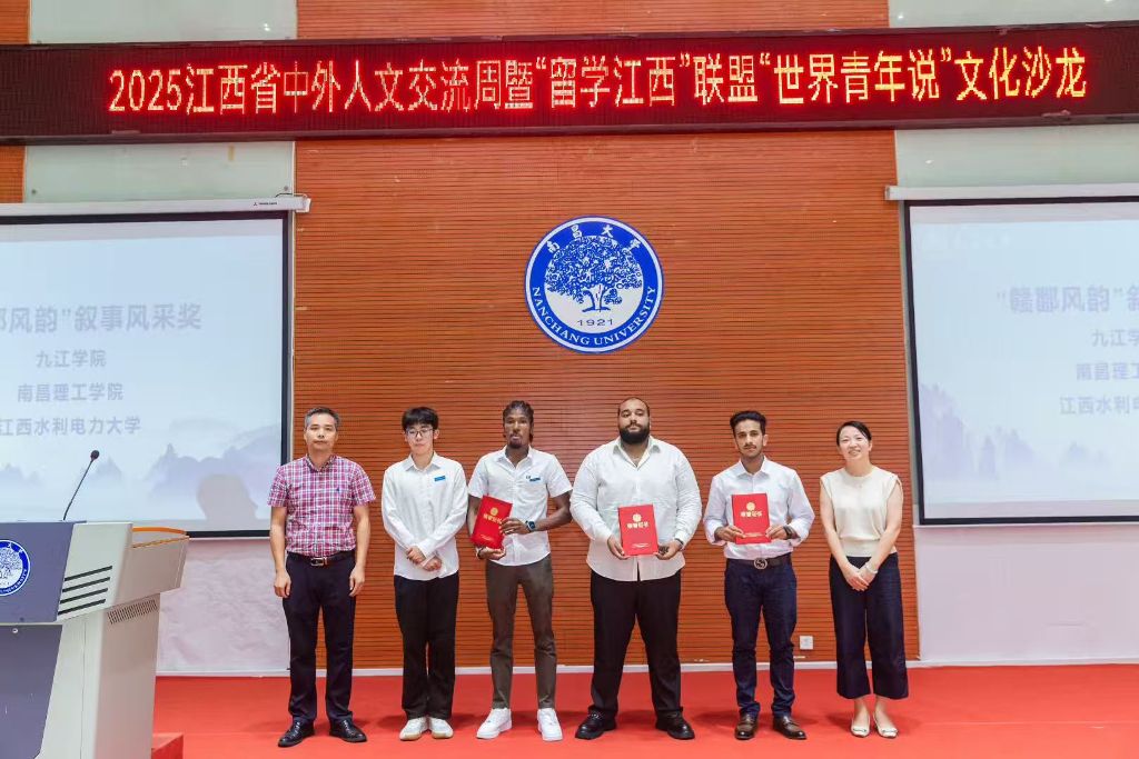 王悦星同学以流利的中文、真挚的情感打动了全场观众,荣获本次沙龙“赣鄱风韵叙事风采奖”。其精彩表现亦获得新华网等主流媒体的关注并接受单独采访,展现了我校国际化人才培养的初步成果。