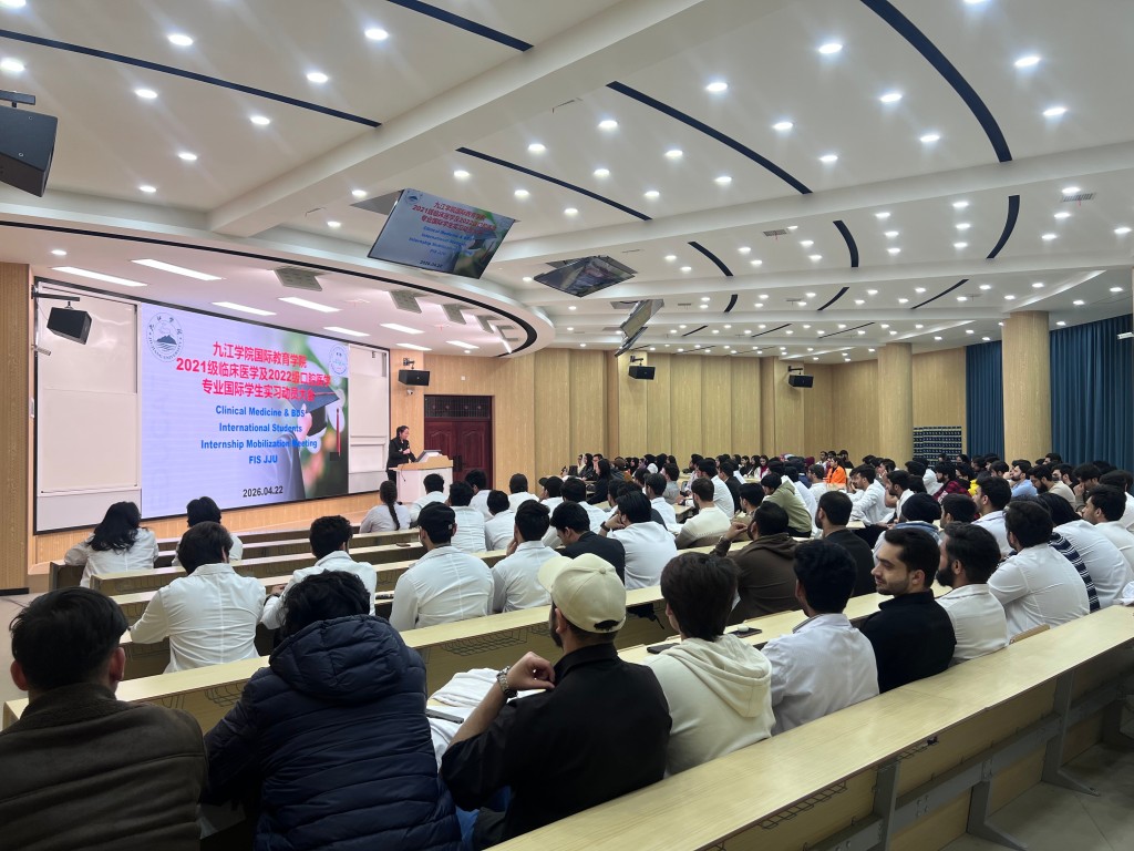 The Internship Mobilization Meeting has been held for the 2021 batch students . The meeting was attended by Ms. Zhu Xiaojing, Deputy Dean of FIS; Mr. Wang Bin, representative from Jiujiang University Affiliated Hospital and 150 students from the 2021 batch participated.