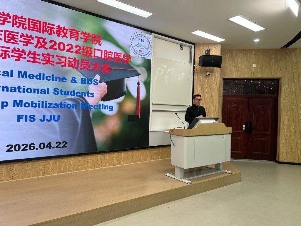 4月22日,yL23411永利集团在竞知楼阶四教室举行2021级学生实习动员大会。副院长朱小晶、临床医学院教师王彬等出席会议,150余名国际学生参加大会。会议由白等田主持。